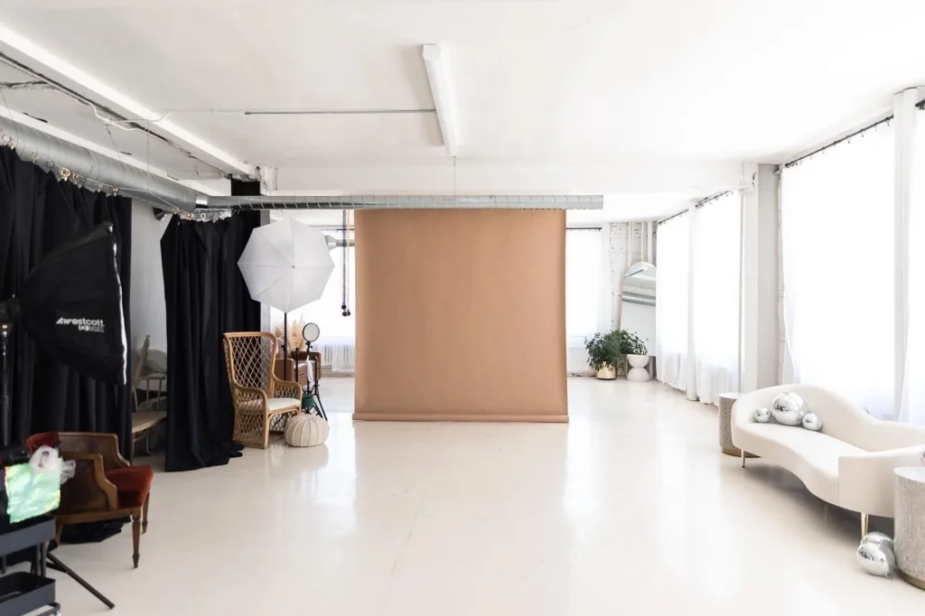 YSF Pontiac is a creator’s dream space designed for flawless photography and content sessions. With 16ft ceilings, original hardwood floors, and a massive 9ft seamless paper backdrop available in Arctic White, Jet Black, or Ivorine, your shots will look clean and professional every time. The studio comes fully equipped with two dimmable, color-temperature-controlled softbox lights, a queen bed with sleek black headboard, unique furniture props, garment rack, and even Spotify Premium so you can curate the exact mood you need. From boudoir to fashion to product shoots, this stylish Pontiac gem has everything to make your vision come alive.