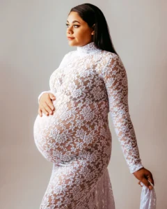 This planning phase includes access to our extensive client wardrobe, featuring designer maternity gowns and accessories specifically chosen to photograph beautifully. You’ll get to select outfits, try them on and make any adjustments to our plan if we need to purchase any additions for your vision. We also provide detailed preparation guides covering everything from what to eat the morning of your session to skincare tips for glowing skin in your portraits.