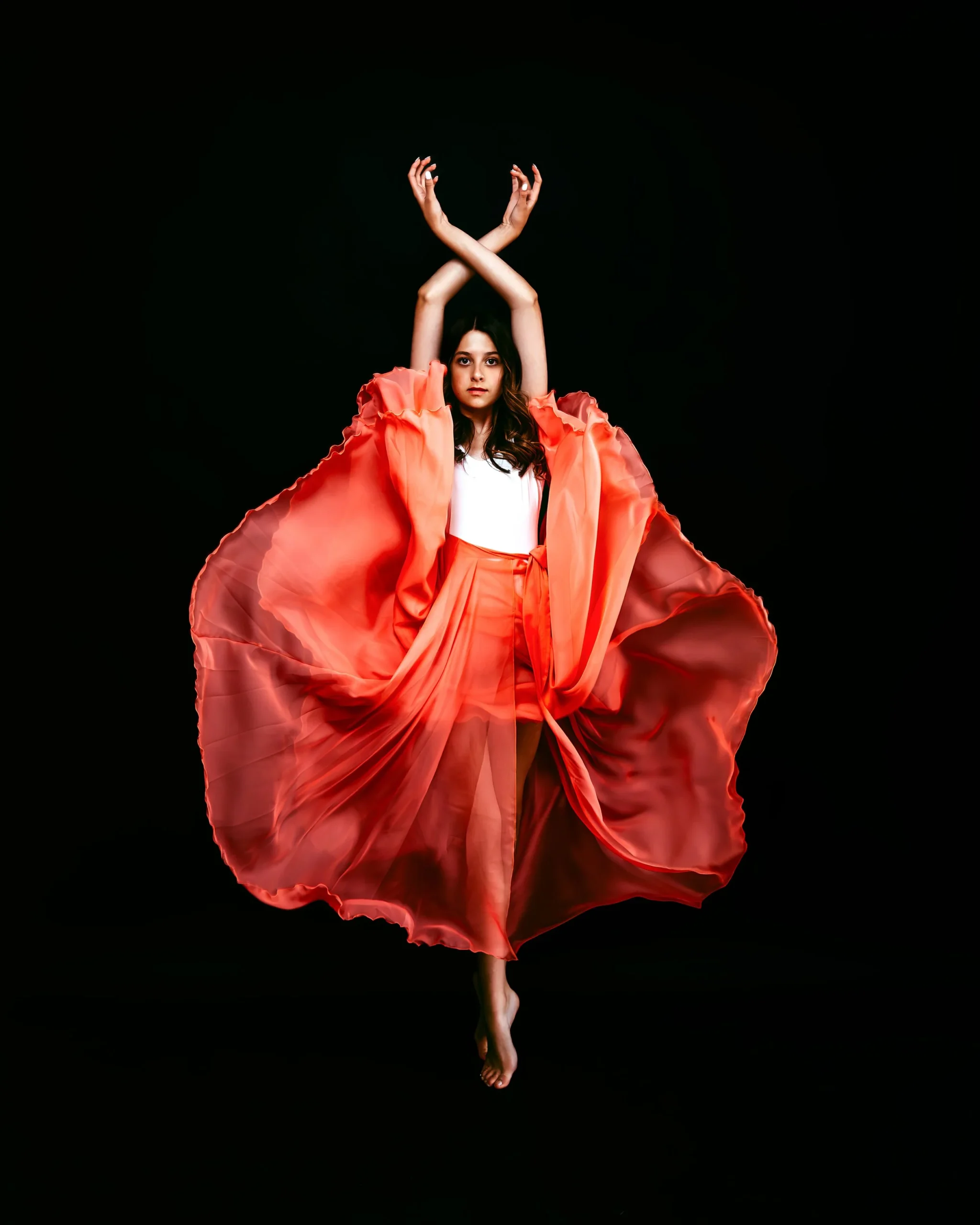 Our first participant brought immense passion and grace to her session. From the outset, it was clear that this shoot would be something special. We collaborated closely to plan every detail, ensuring that her artistic vision was fully realized. Together, we curated her wardrobe, selected the perfect backdrops, and worked with our talented hair and makeup team to complement her expressive movement.