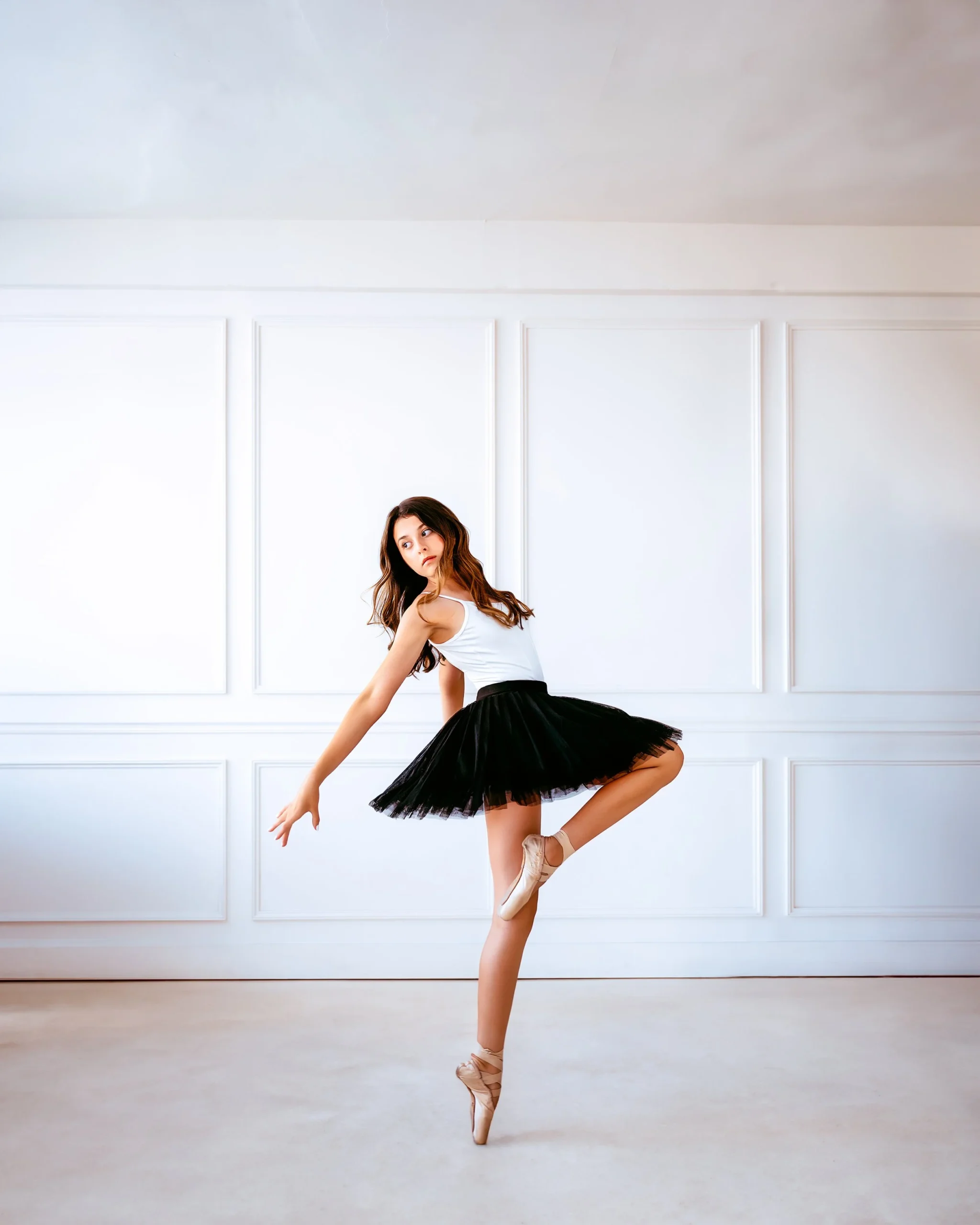 We explored a range of moods throughout the session. One moment, soft lighting and flowing fabrics would envelop the dancer, casting an angelic glow. In the next, dramatic shadows and bold backdrops accentuated the energy of her more powerful movements. These contrasts allowed us to showcase both the delicate and strong sides of her art, creating a dynamic, multifaceted visual narrative.