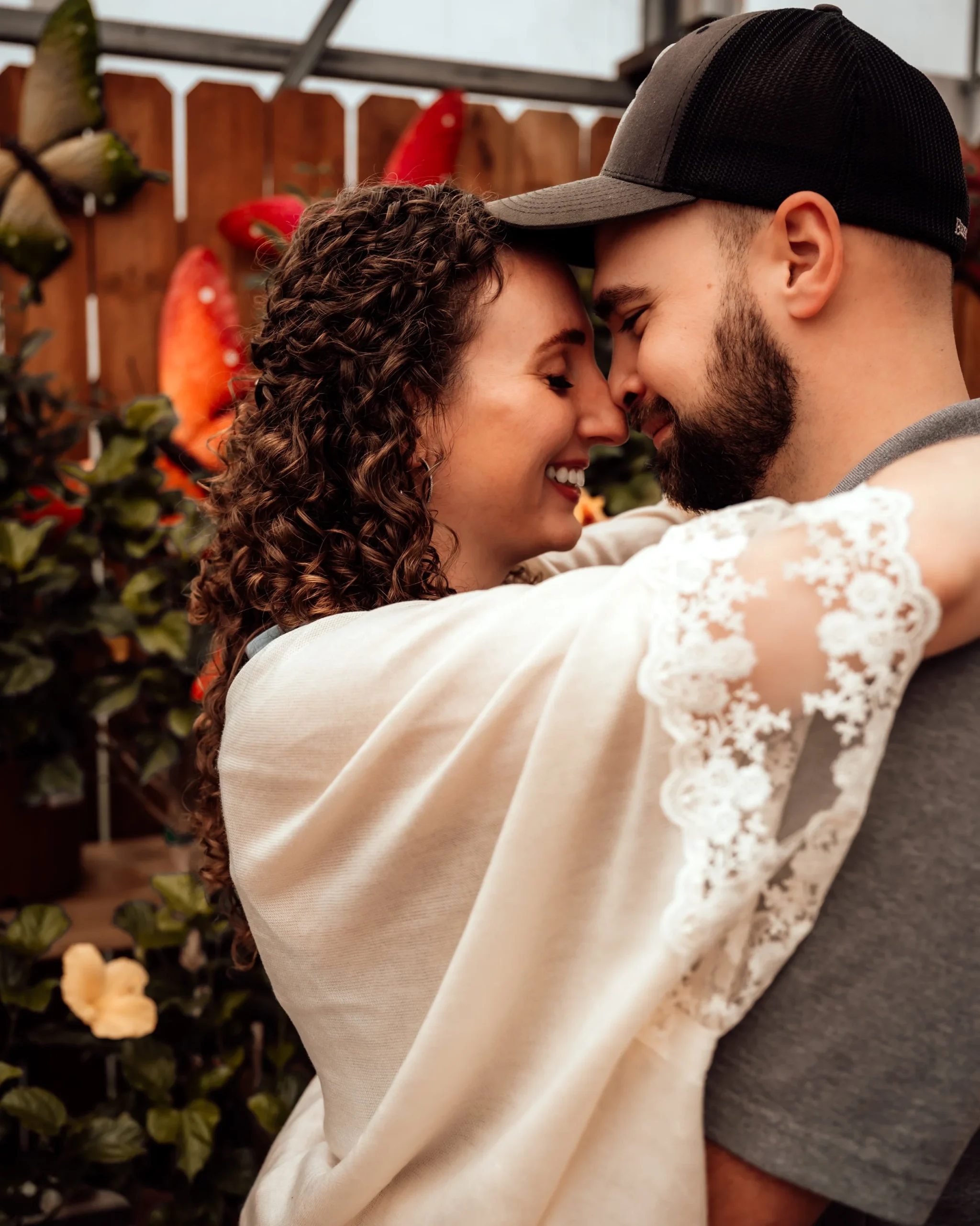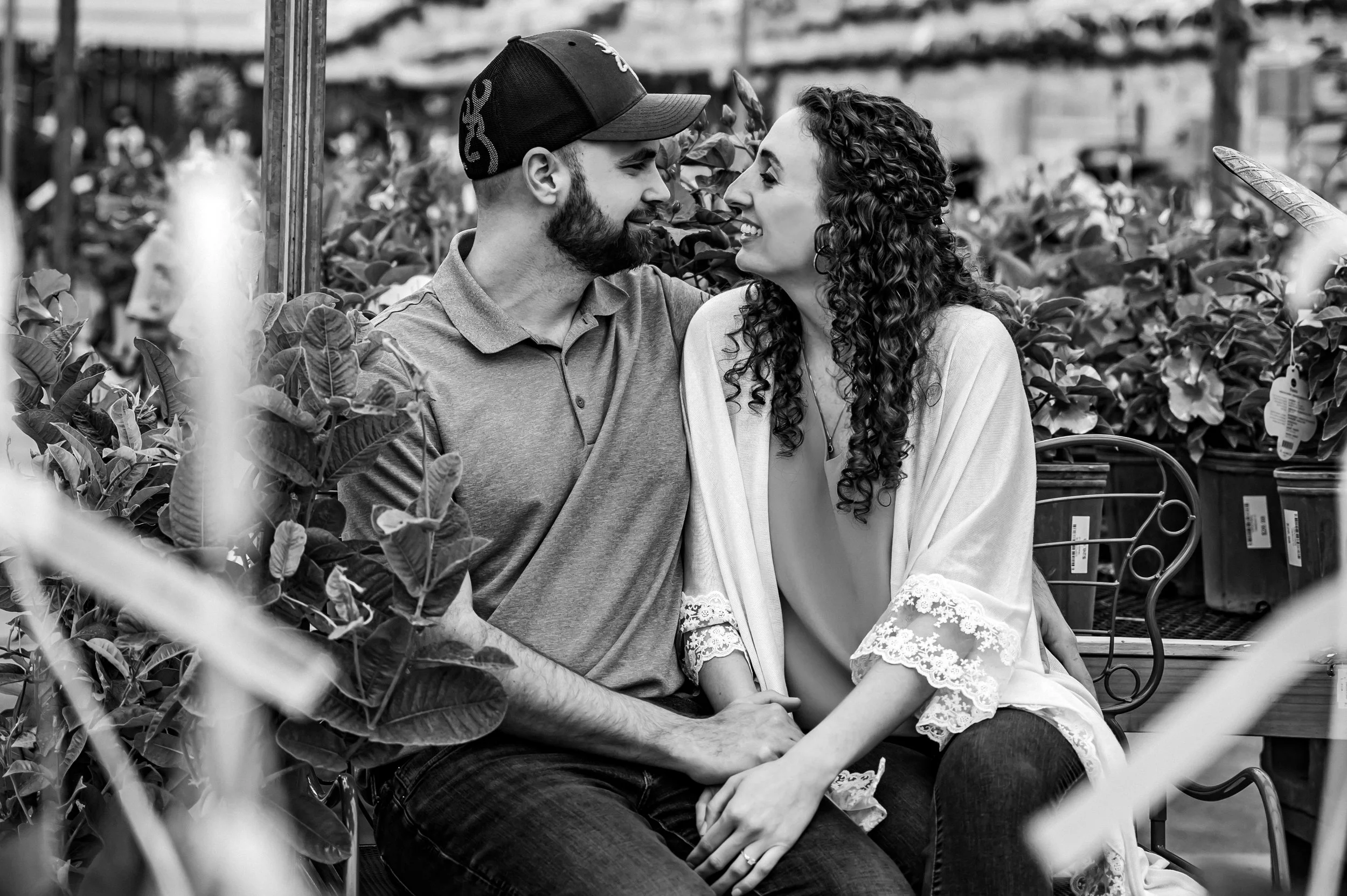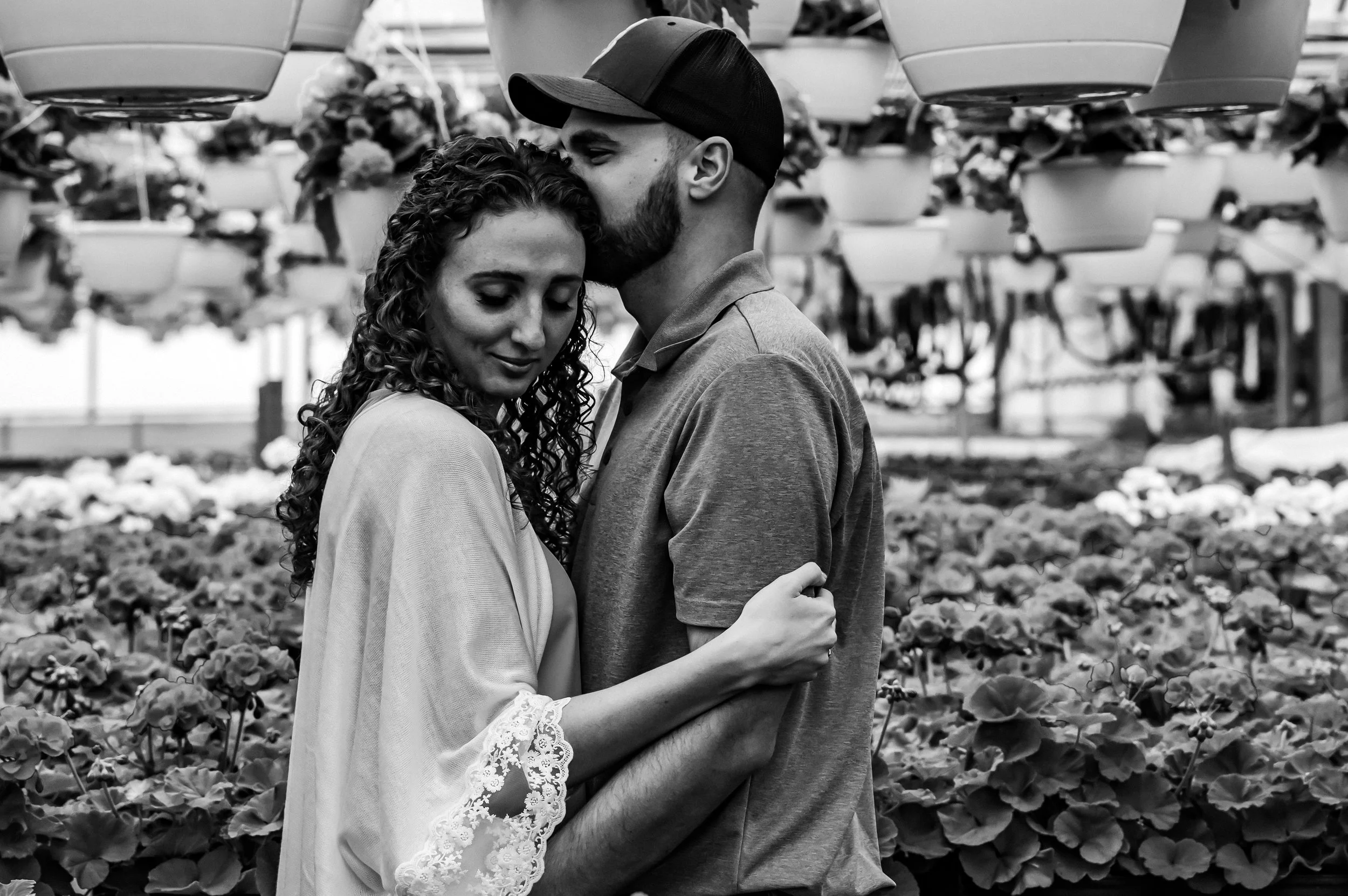 As soon as we stepped into the greenhouse, I knew we were in for a treat. The vibrant, colorful flowers provided a stunning backdrop that simply cannot be replicated. Kalin and Dalton were understandably nervous at first, as many couples are when they first step in front of the camera. But with a little bit of guidance and encouragement, they quickly relaxed and allowed their love to shine through.