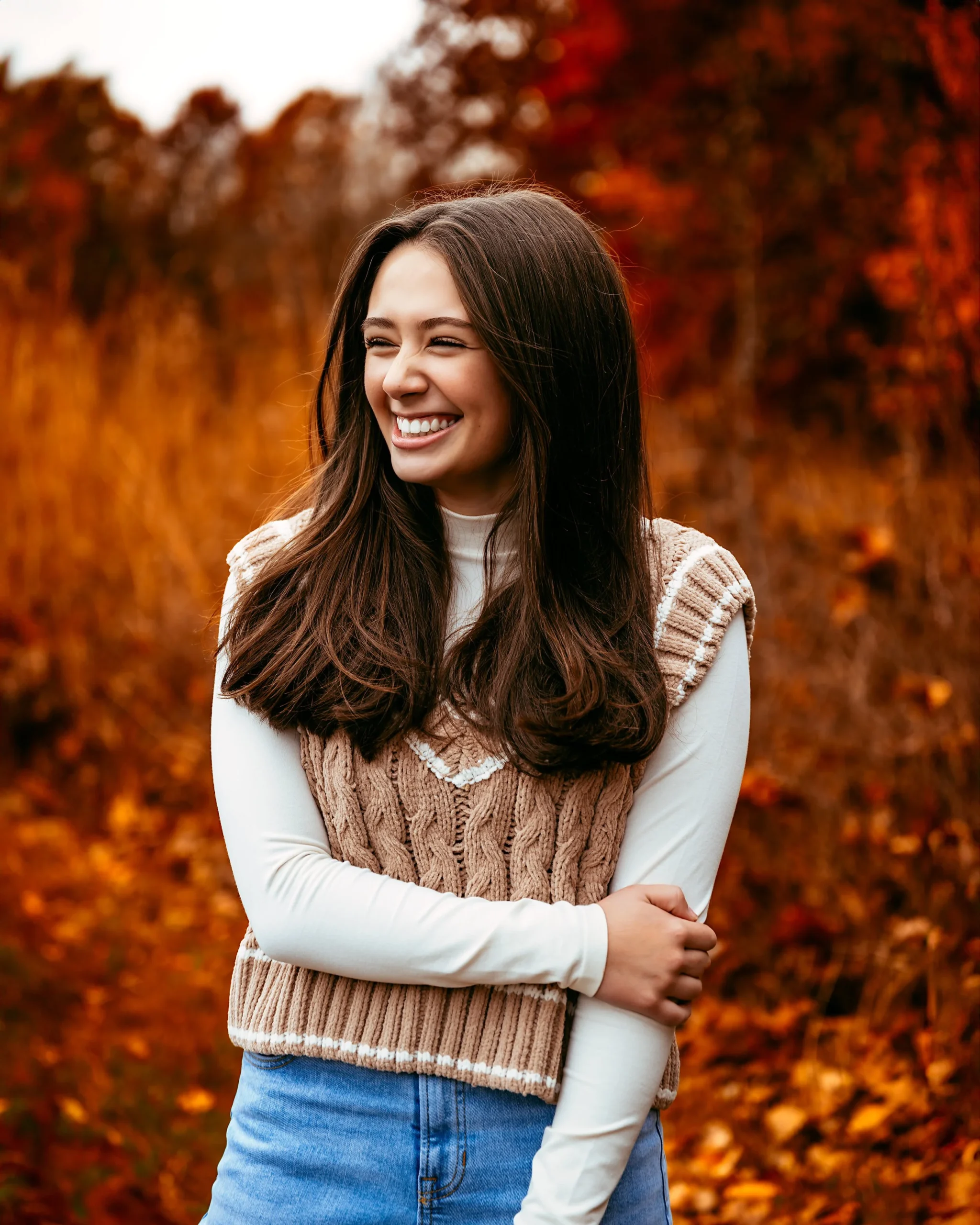 The cooler temperatures of fall also make outdoor sessions more comfortable, allowing for longer shoots without the harsh summer heat. Additionally, fall fashion offers wonderful layering opportunities – cozy sweaters, stylish jackets, and boots that complement the seasonal aesthetic perfectly. For seniors looking to create timeless portraits that capture both their personality and the natural beauty of Michigan, fall sessions provide unmatched opportunities.