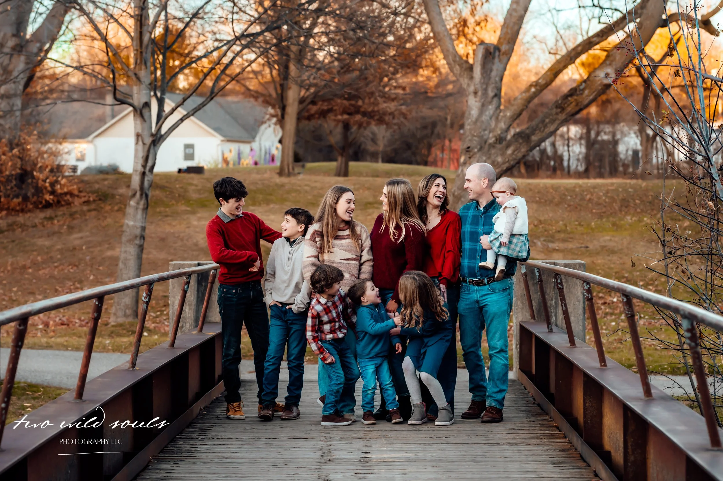 Once we finished our time by the creek we made our way to the iconic bridge connecting Paint Creek Trail to Rochester Municipal Park. Here we captured the entire family for a few iconic photographs showing off the entirety of the Neiman Family. Quickly after this portion every child was asking for photos with mom; clearly she is a favorite in town! Once everyone that wanted a photo with mom was done they transitioned over to Dad. As this was going on, Ryan was constantly trying to photobomb everyone on the bridge; he is quite the bundle of energy always running around!