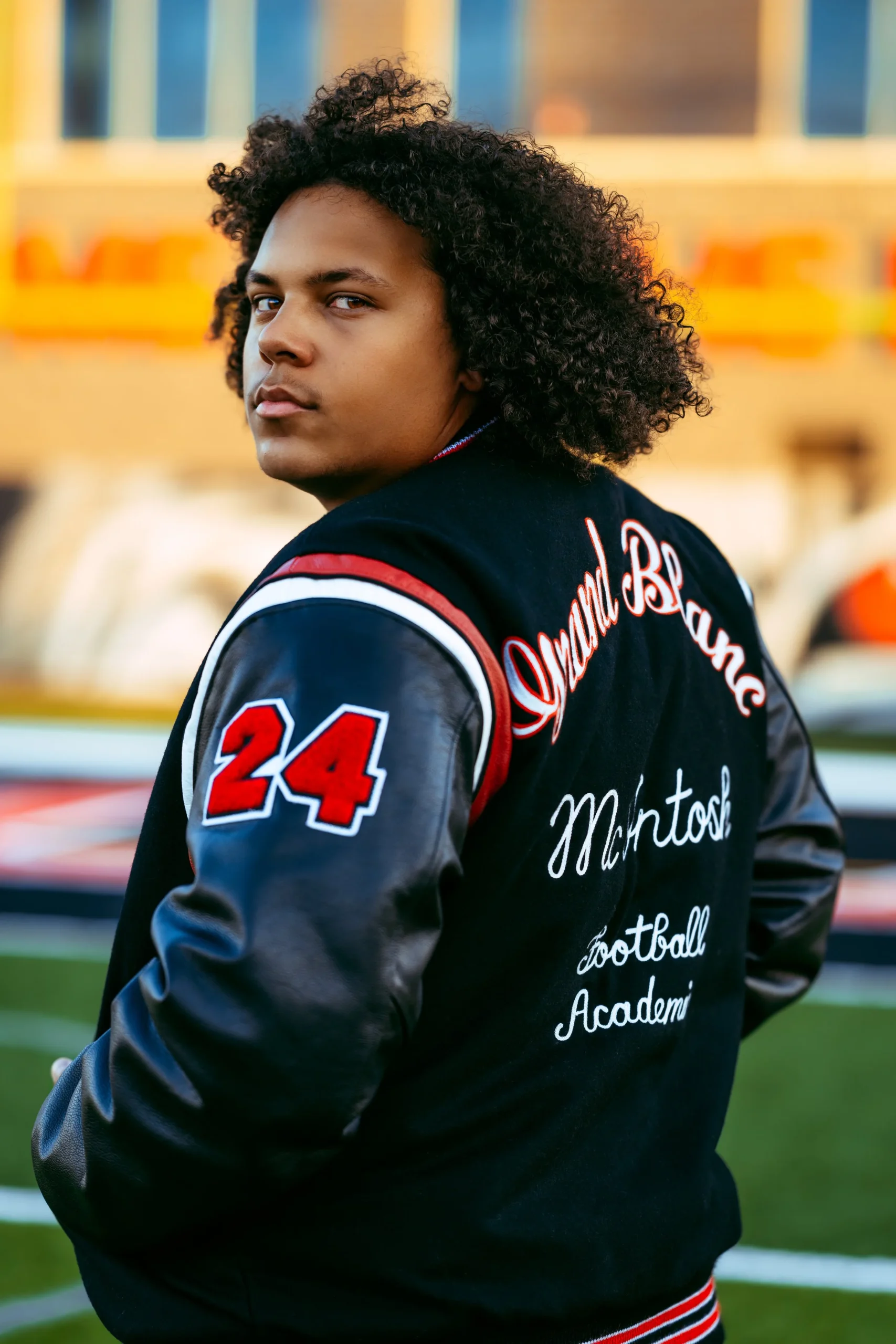 Bold and vibrant, the signature style of my photography business, took on a renewed meaning against the backdrop of Grand Blanc’s stadium. The richness of Derek’s achievements, the warmth of his personality, and the dynamism of the setting blended seamlessly into each frame, crafting a visual narrative that resonated louder than words.